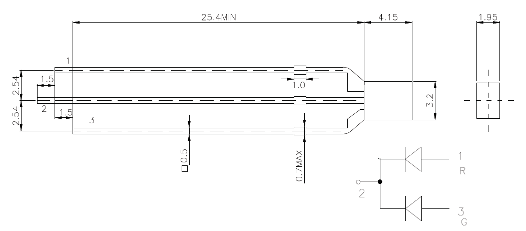 | 红色+黄绿光 | 620-650 | 360-1500 | 15°-110° | 1.8-2.4 | 20 | all | 2.54 | 可编带 |