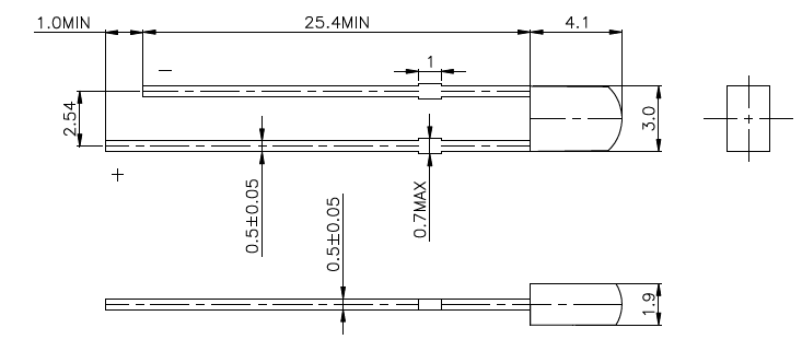 | 红光 | 620-650 | 60-2500 | 15°-110° | 1.8-2.4 | 20 | all | 2.54 | 可K脚+编带,可折弯 |